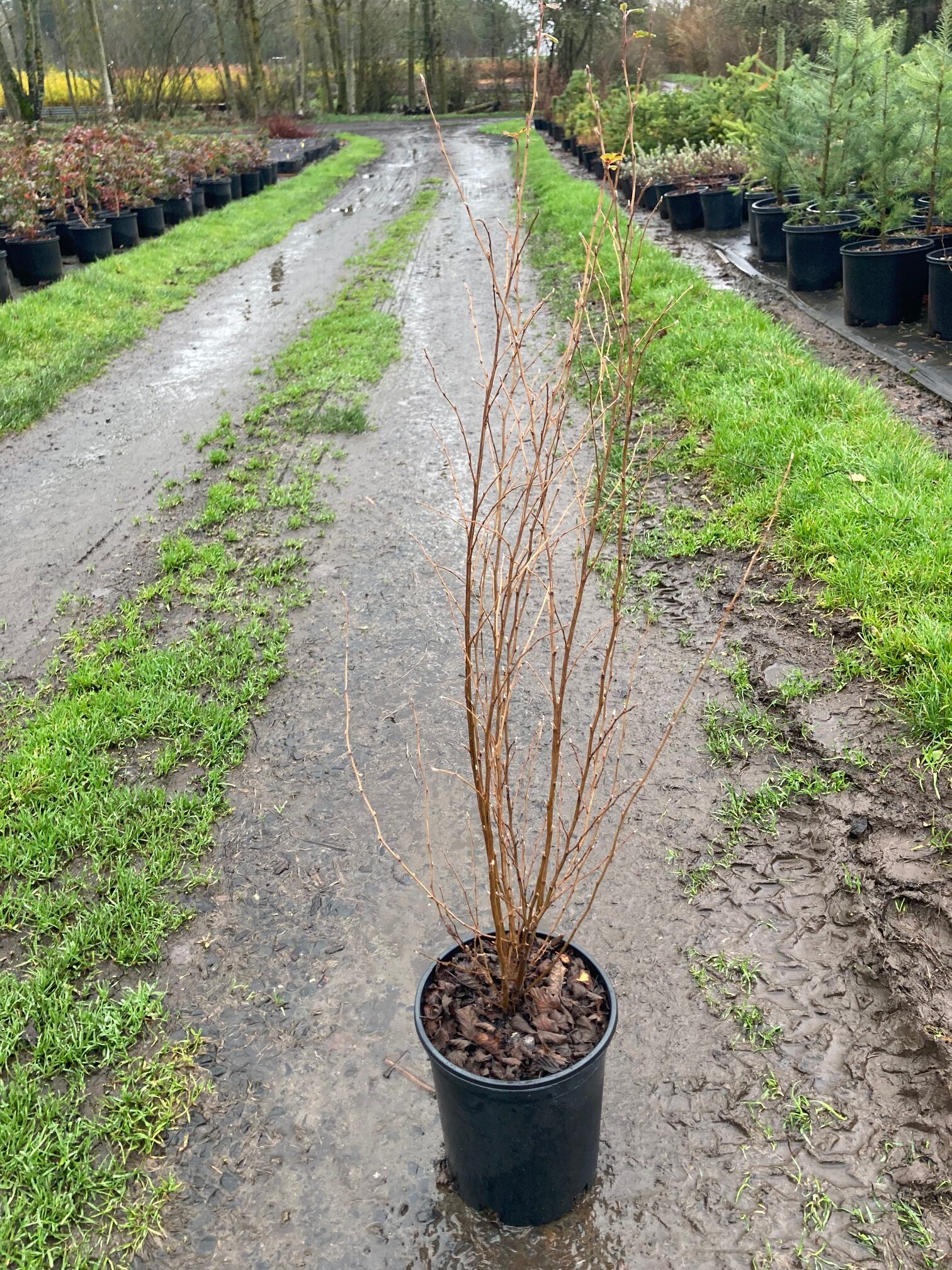 Habit: deciduous shrub growing with arching stems and in a spreading fashion. The bark in older shrubs is brownish and peels away from trunks. The green leaves are pyramid to egg shaped with many small lobes on the margins each ending in a sharp tip. The drooping 4-8 in (8-20 cm) lilac-like cluster is composed of multitudes of tiny creamy white flowers giving off a pleasant fragrance from a distance. The flowers turn to beige then brown and often persist through winter. The dry, one-seeded fruit is small and hairy. Blooming takes place between May and July. Leaves turn red in fall.